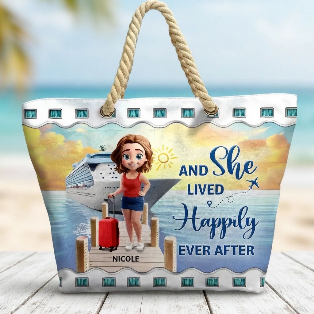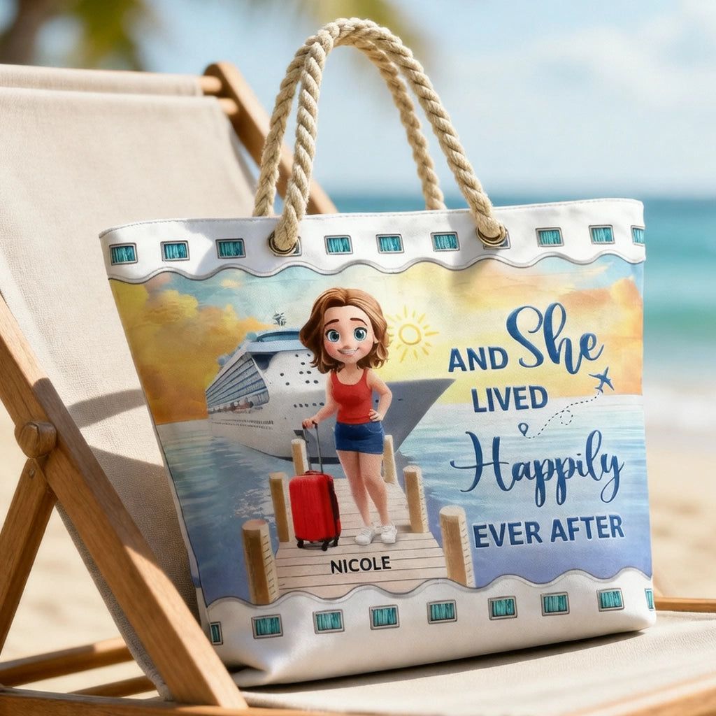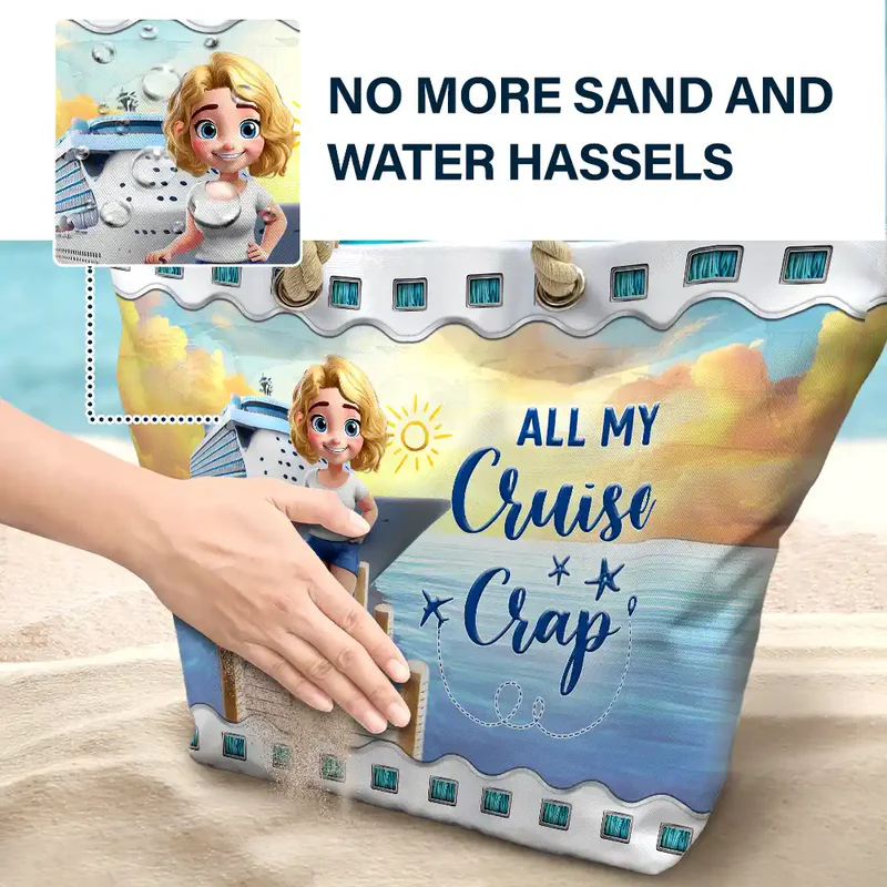Featuring a playful cartoon girl by the dock with a cruise ship, suitcase, and sunny beach colors, it brings that excited pre-cruise feeling every time you grab it.