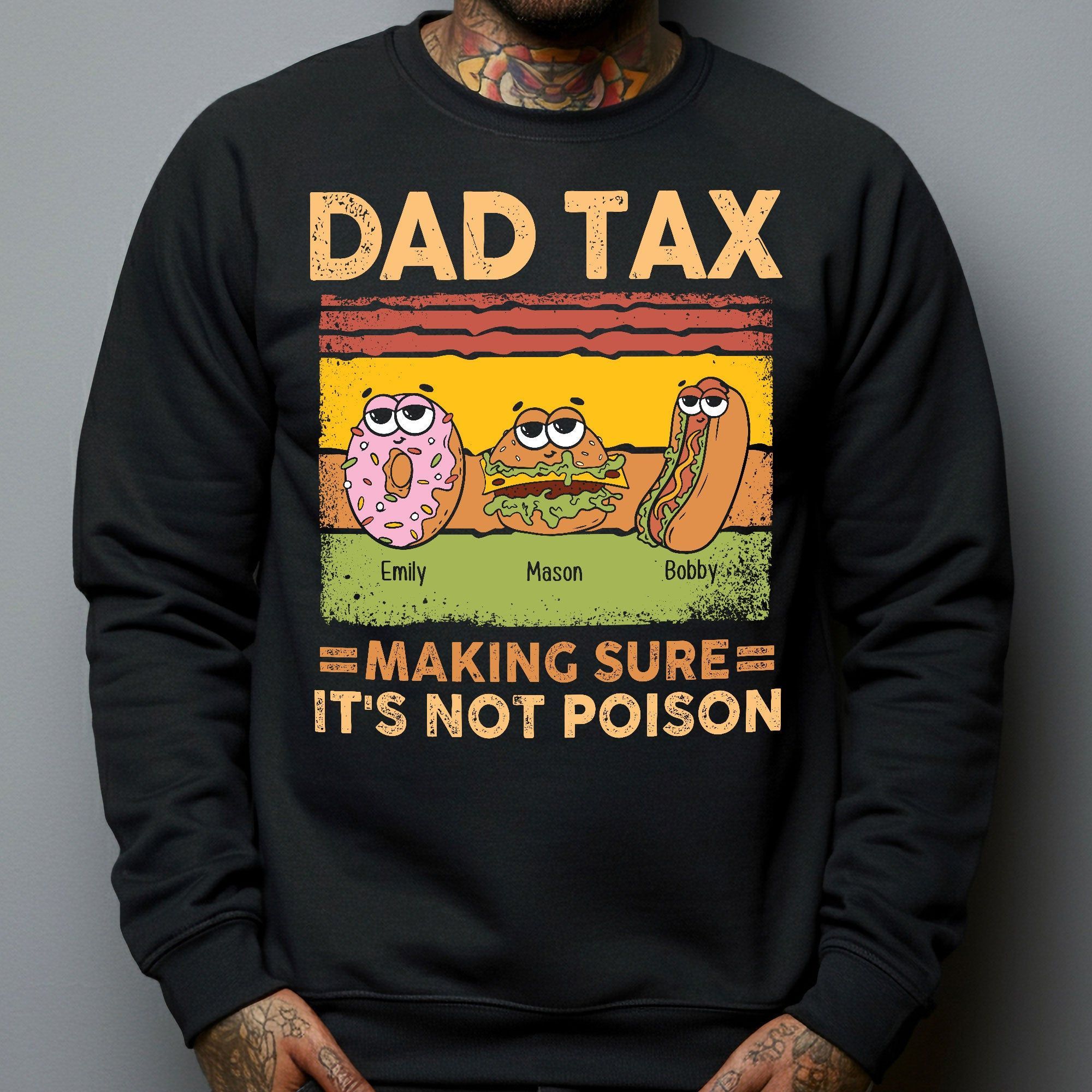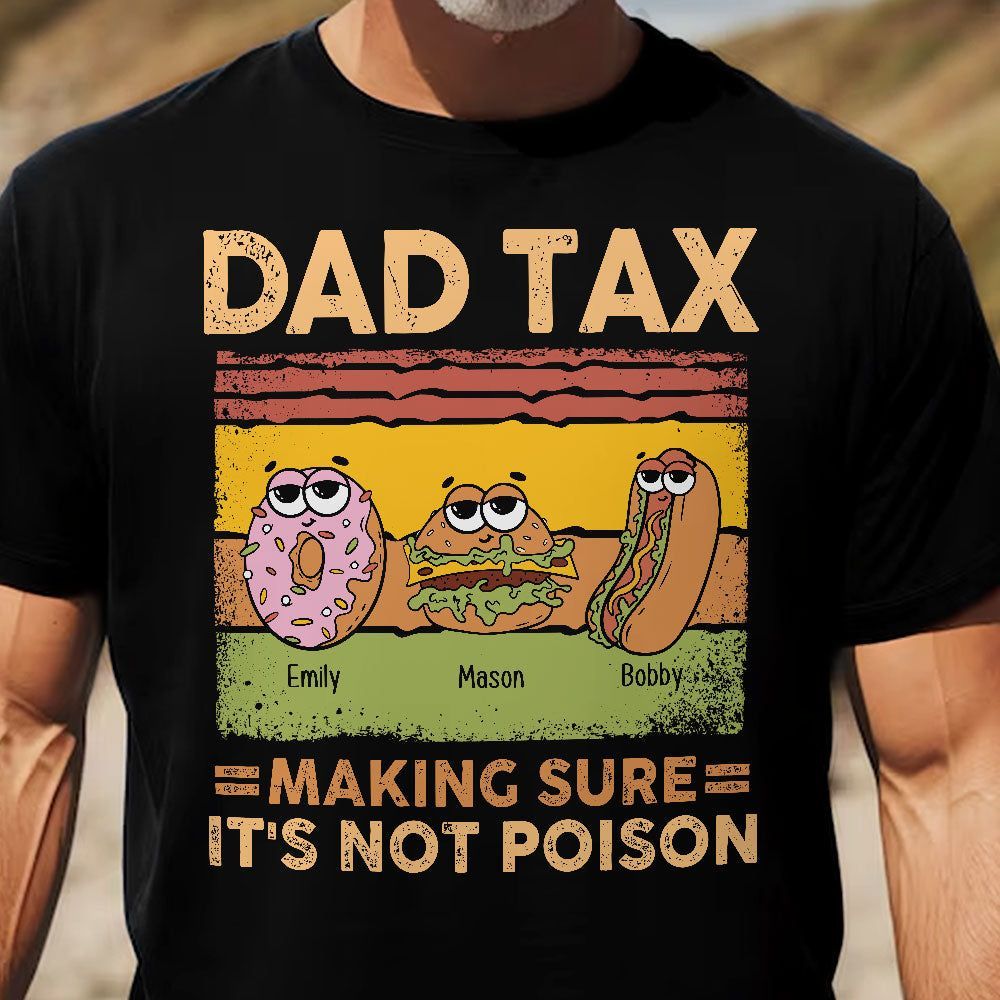 This funny and personalized “Dad Tax” shirt celebrates that classic dad moment we all love.