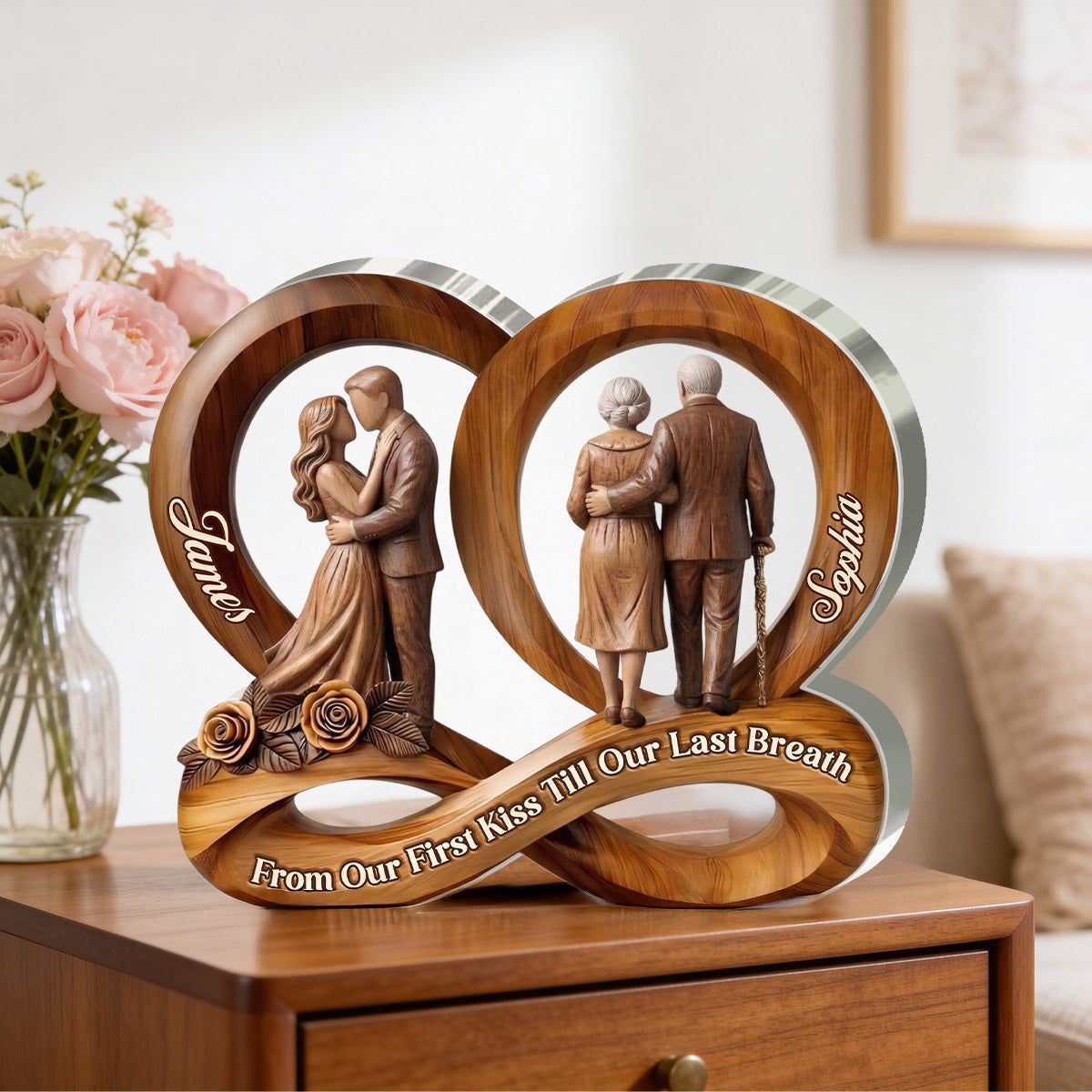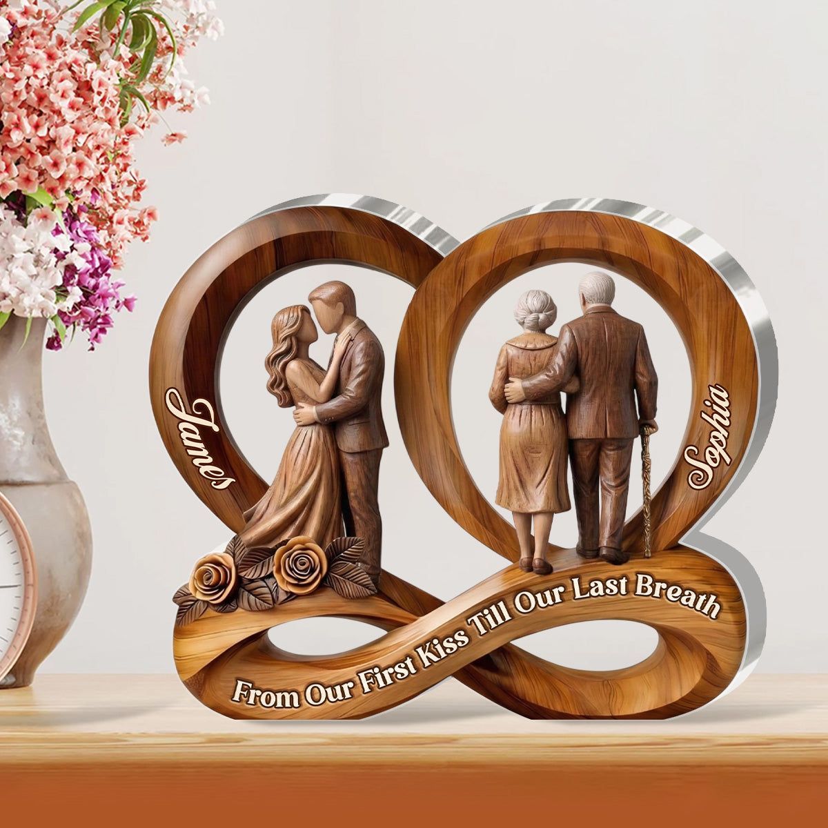 Personalized From Our First Kiss Till Our Last Breath Acrylic Plaque | Custom Name Infinity Couple Keepsake