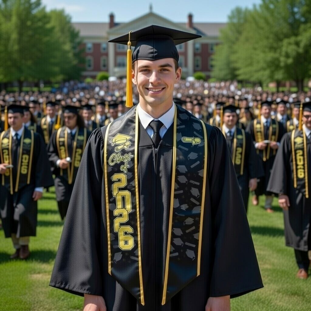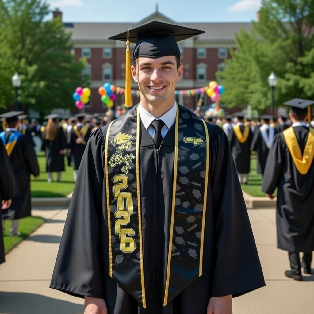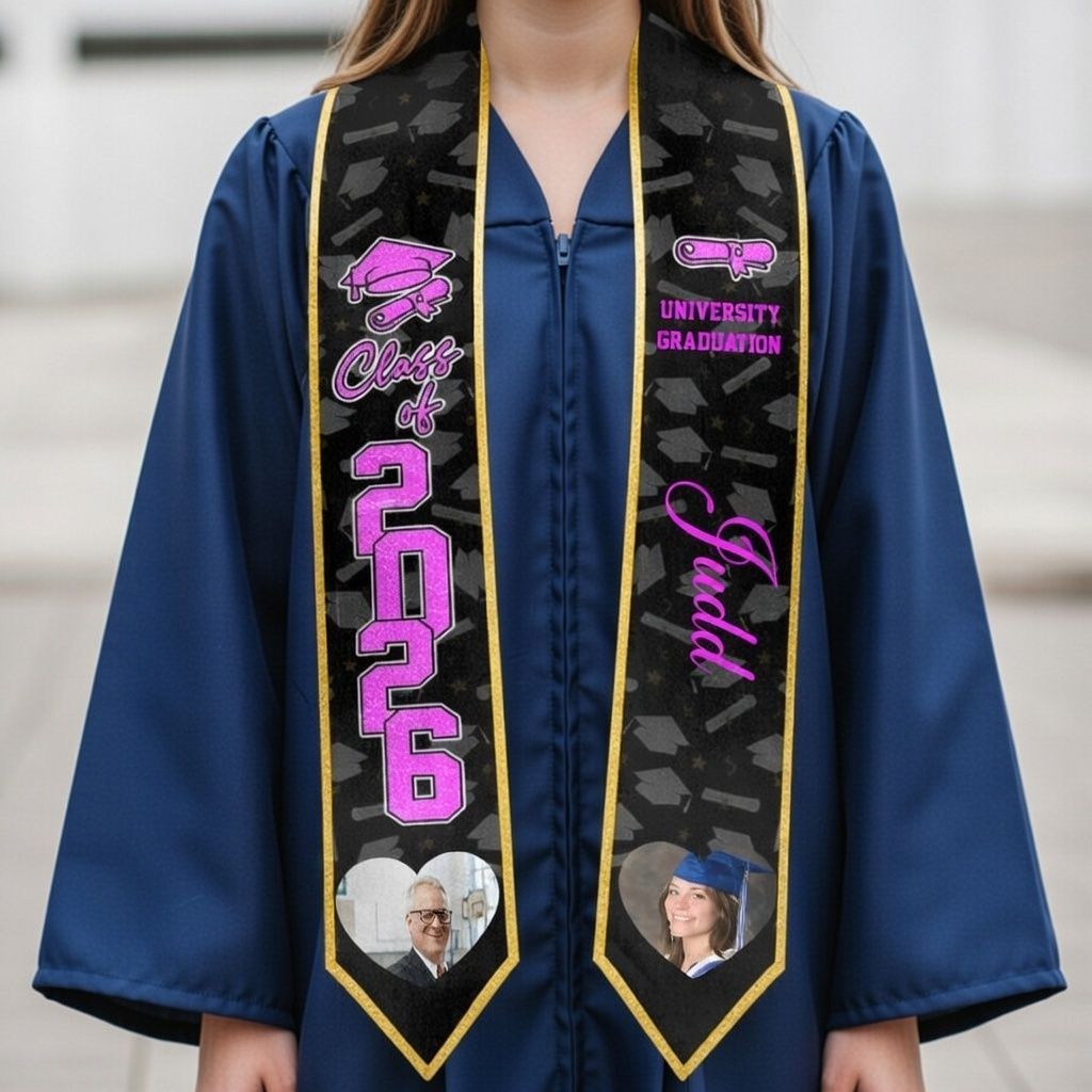 Graduation stoles for the Class of 2026, customizable with names and photos.
