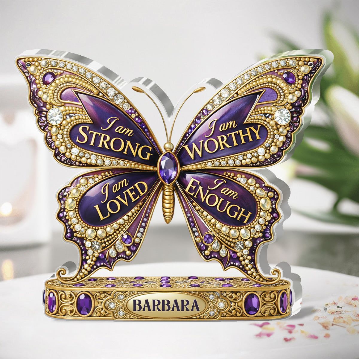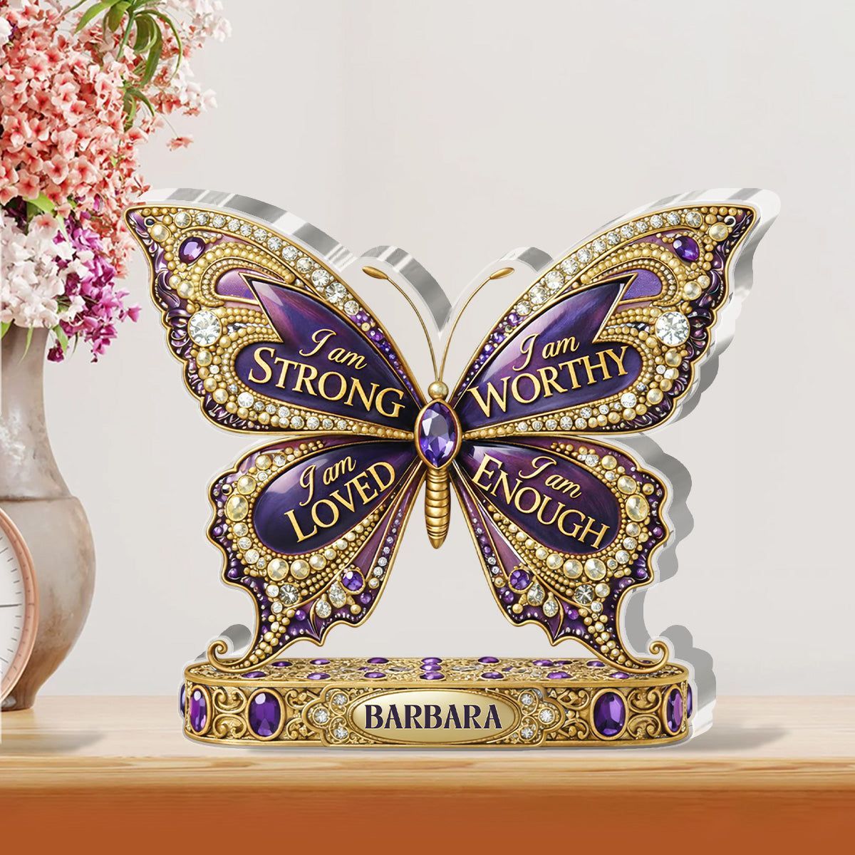 Personalized I Am Enough Butterfly Acrylic Plaque | Custom Name Affirmation Keepsake