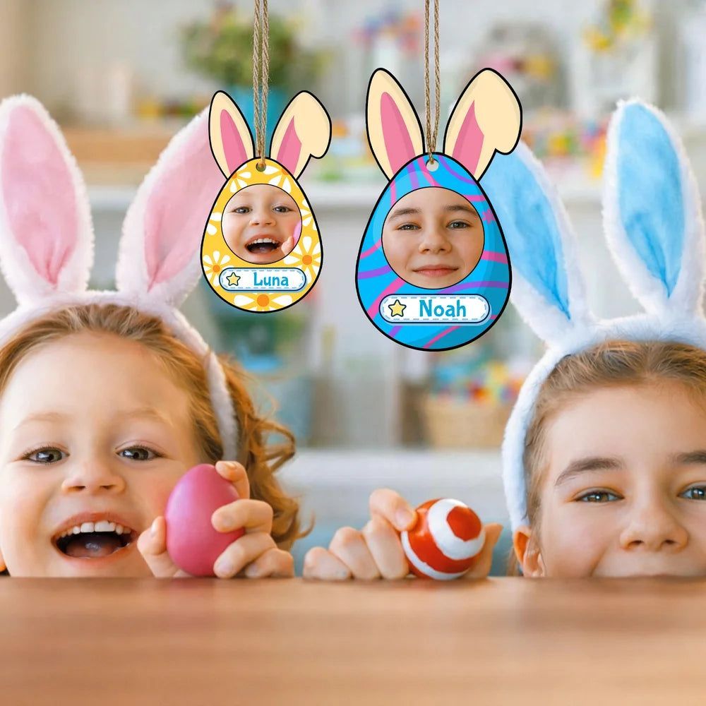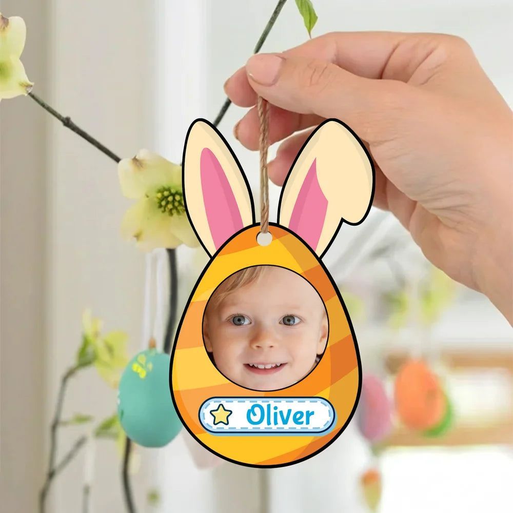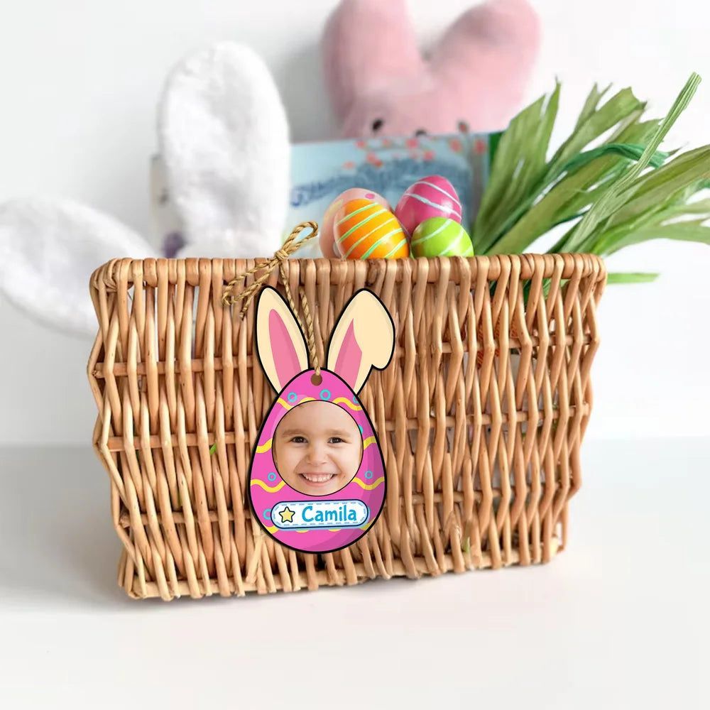 Personalized Cute Easter Bunny Ears Egg Photo Basket Tag with Name Easter Gift for Kids