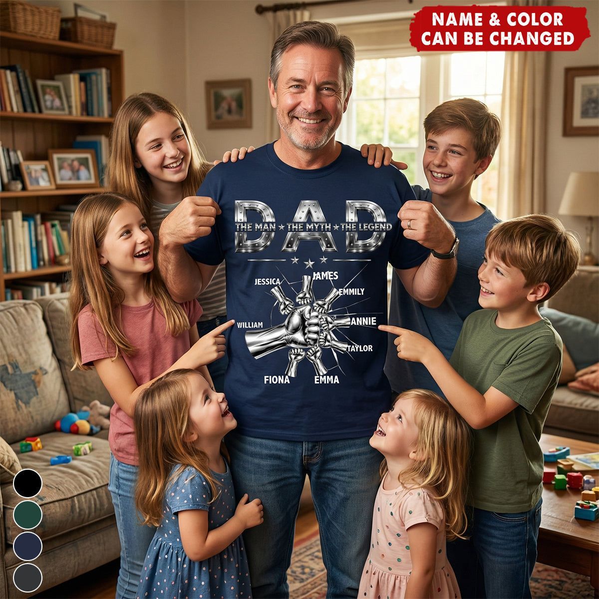 This classic tee celebrates exactly that. With its playful, heartfelt design personalized with your dad's name (and maybe a few inside jokes the rest of the world wouldn't understand), it's more than a shirt—it's a tribute to the guy who taught you how to ride a bike, how to change a tire, and maybe how to laugh at yourself. For Father's Day, his birthday, or just because he deserves to know he's your hero: wrap him in a little love and a lot of truth. Because legends aren't just in storybooks. Sometimes, they're sitting right across the dinner table.