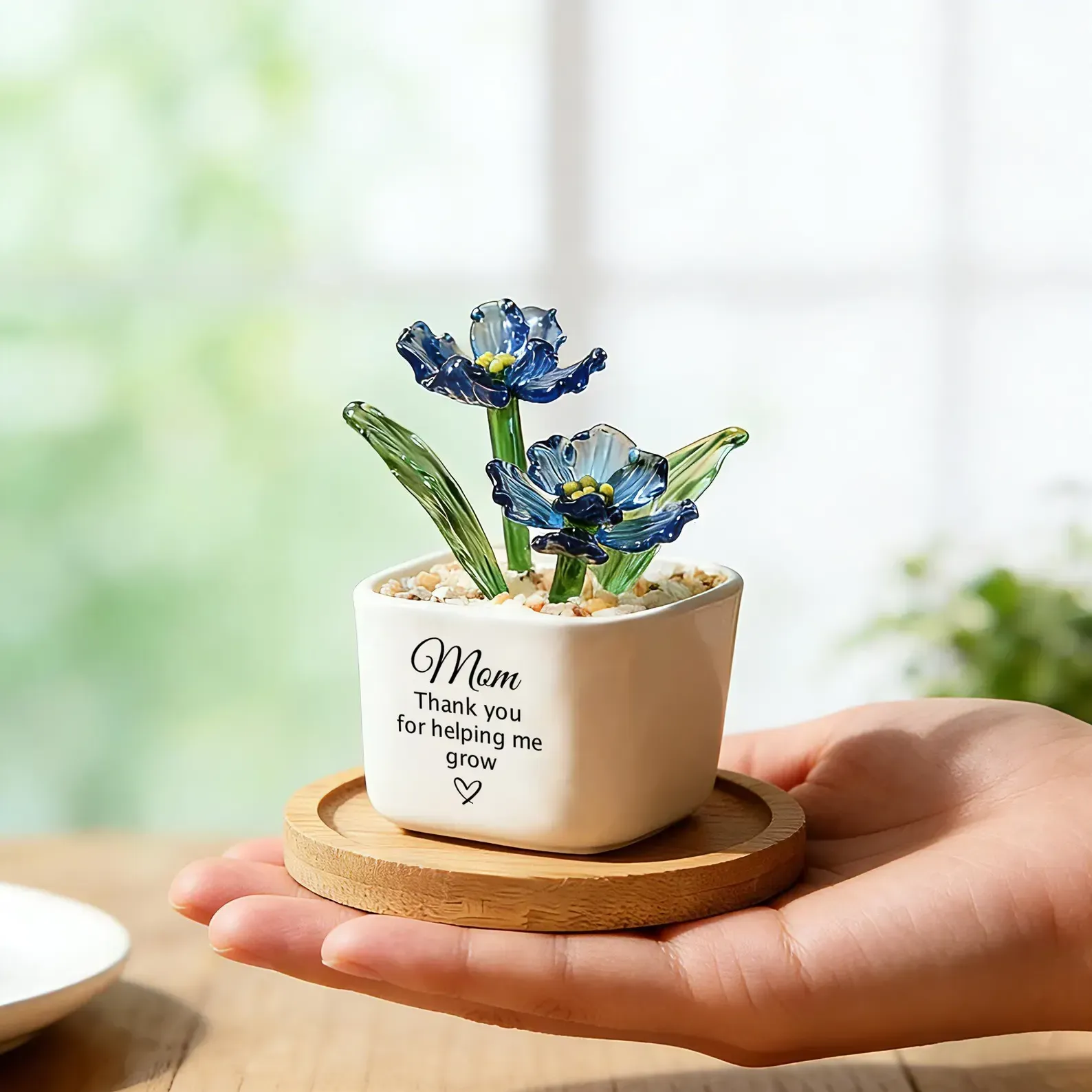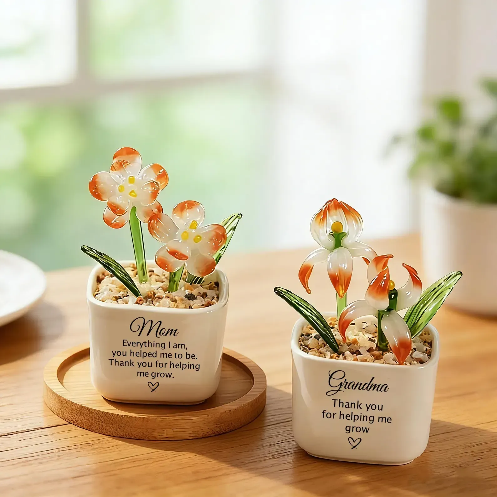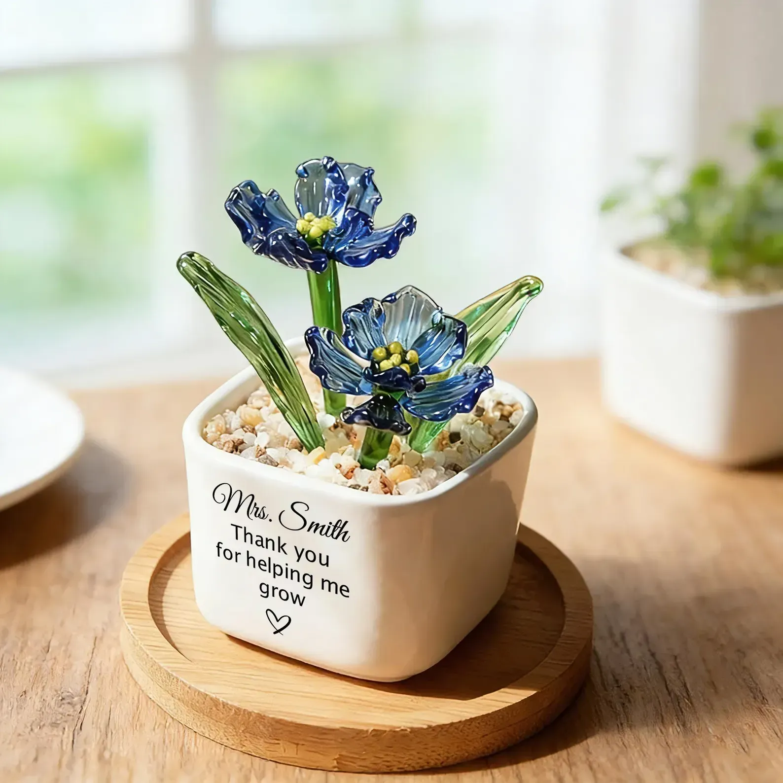 Personalized Thank You for Helping Me Grow Glass Flower Pot | Custom Name Mom Grandma Teacher Keepsake