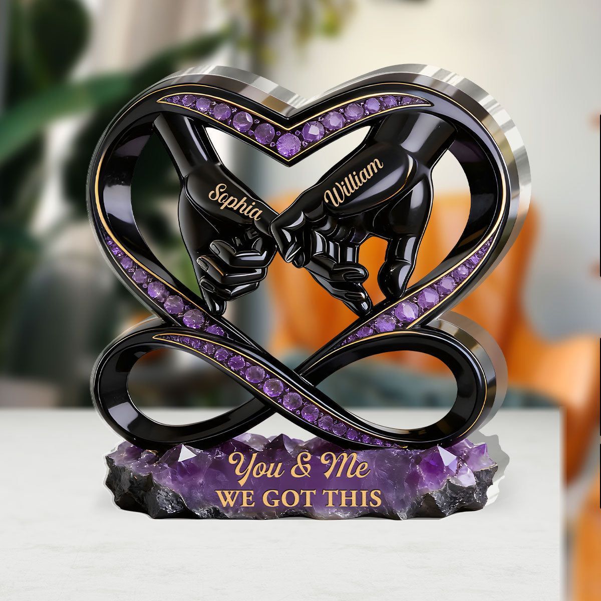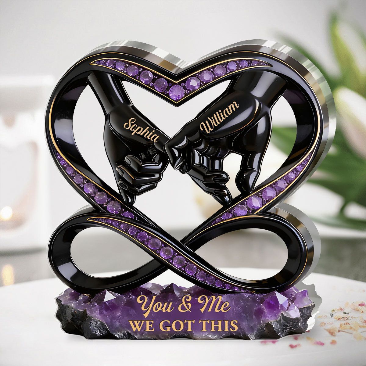 Personalized You & Me We Got This Acrylic Plaque | Custom Name Amethyst Infinity Heart Couple Keepsake