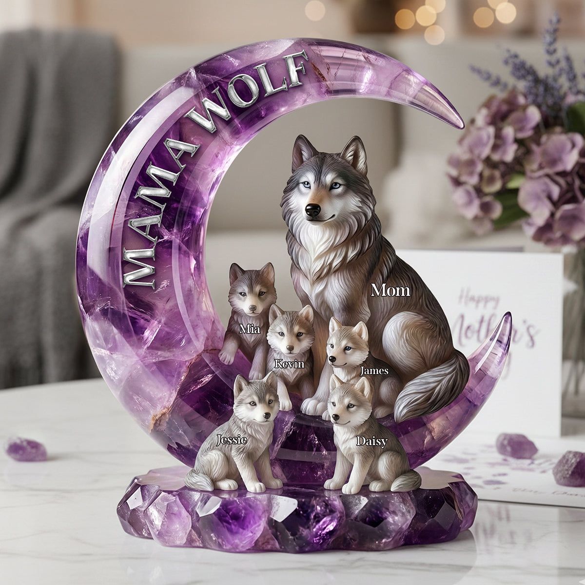Mother’s Day / Mom’s Birthday Décor: A dreamy centerpiece at the celebration, honoring the bond between a protective “mama wolf” and her family.
