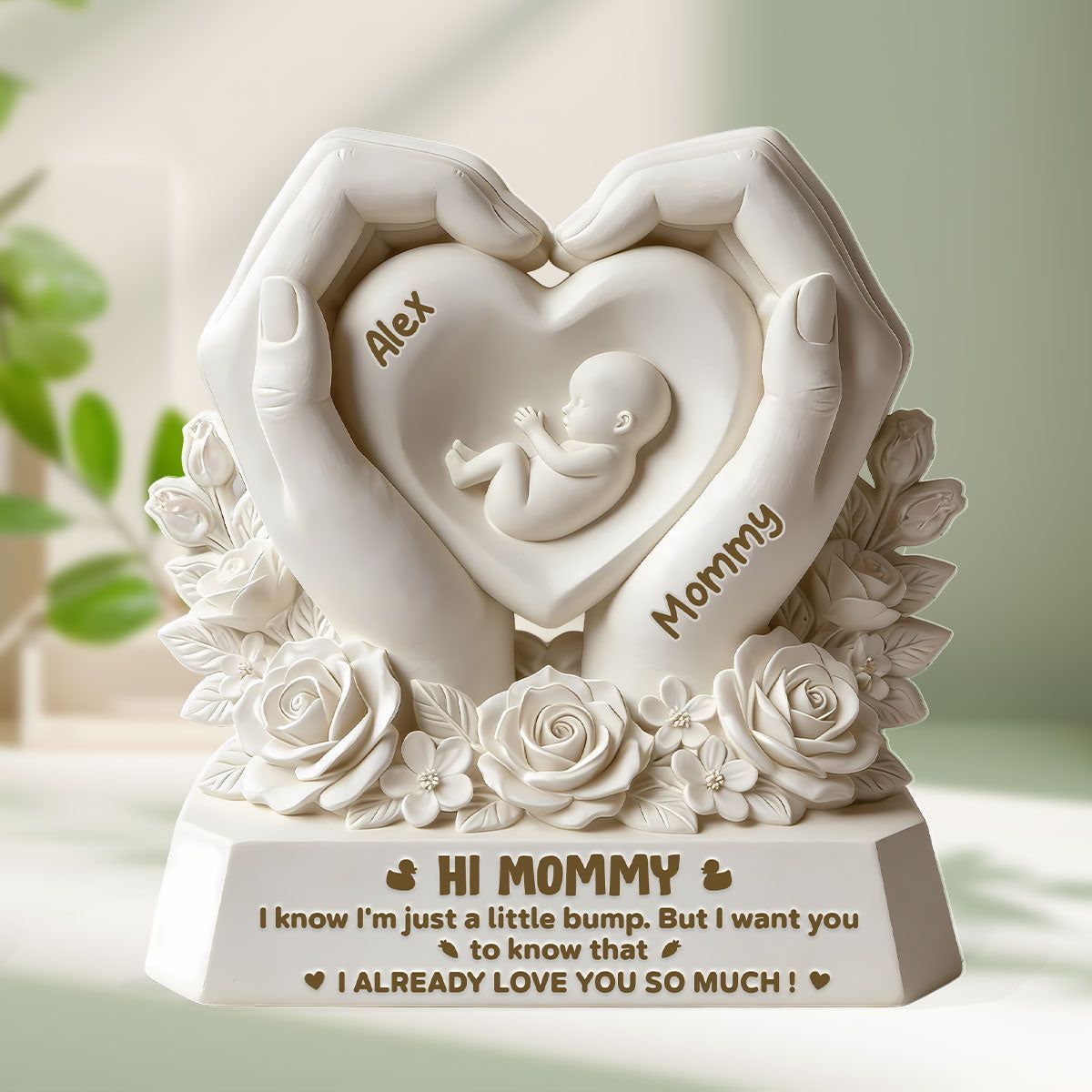 Personalized Hi Mommy Pregnancy Acrylic Plaque | Custom Name Baby Bump & Mommy Keepsake