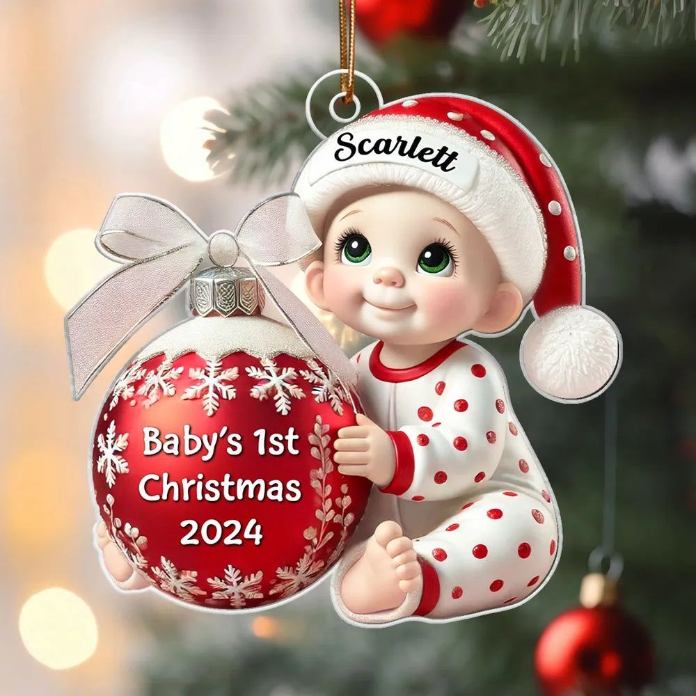 Personalized Babys First Christmas Ornament, custom name and year, a special gift for newborns and parents, perfect for celebrating babys first holiday