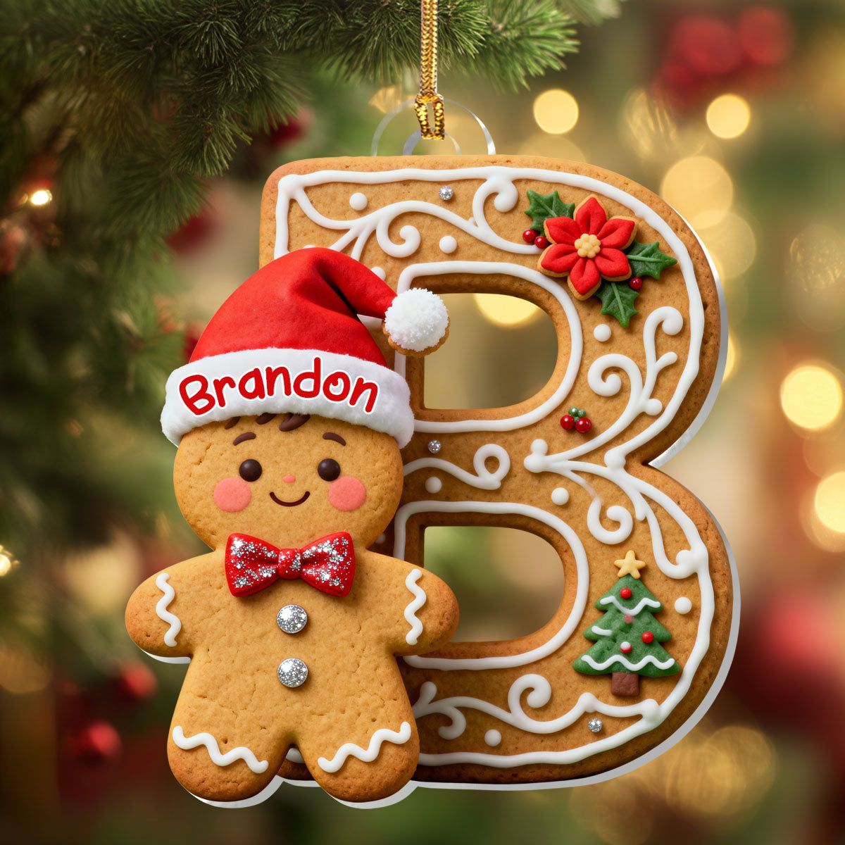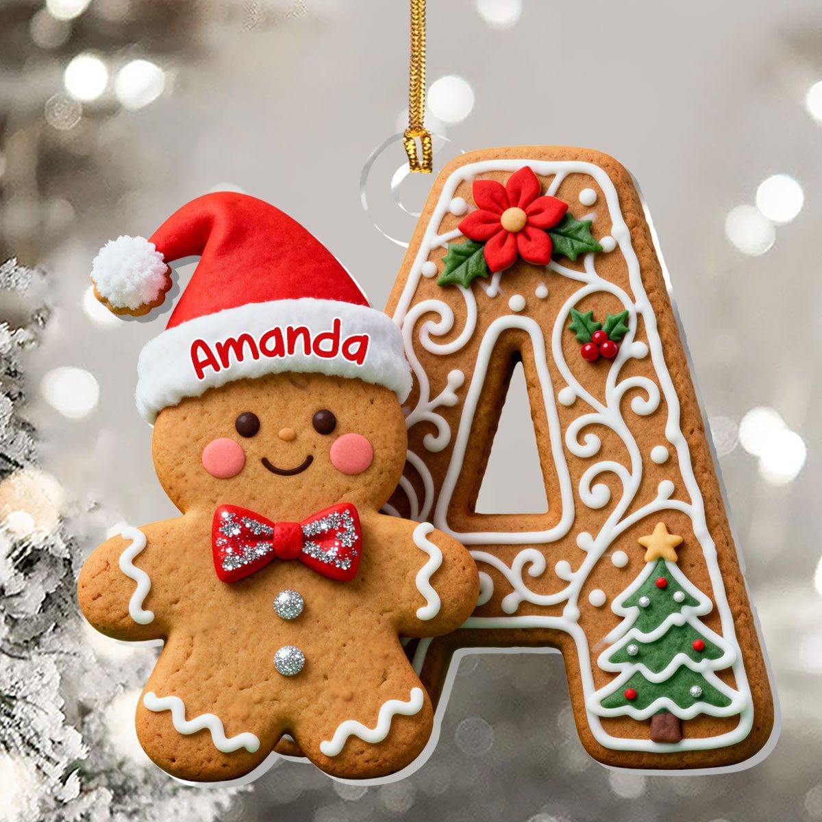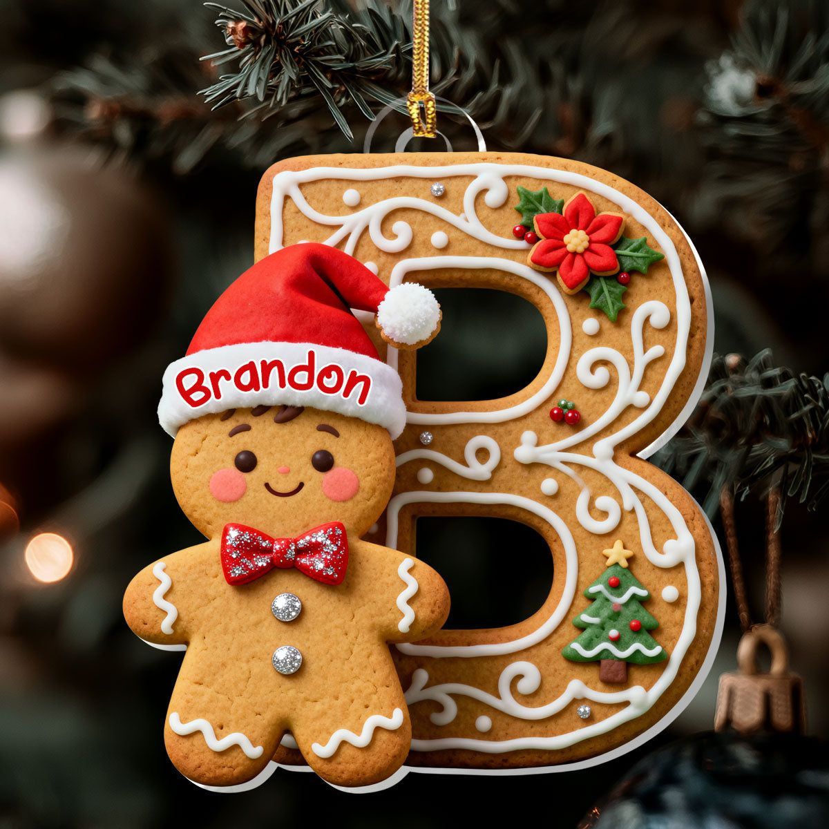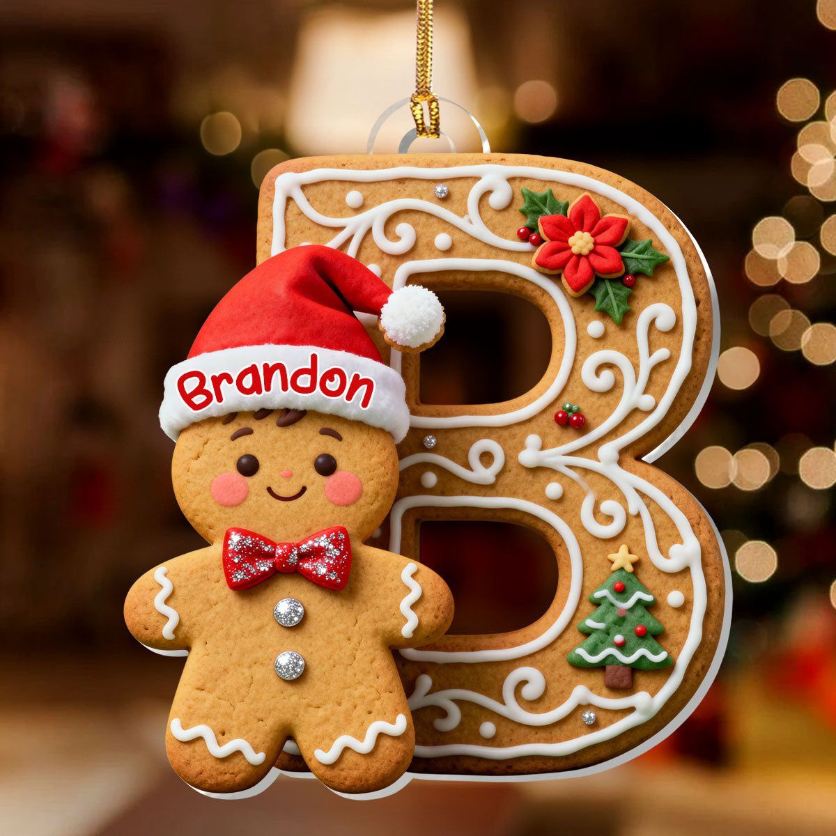Adorable Gingerbread Alphabets - Personalized 1-Layer Acrylic Ornament