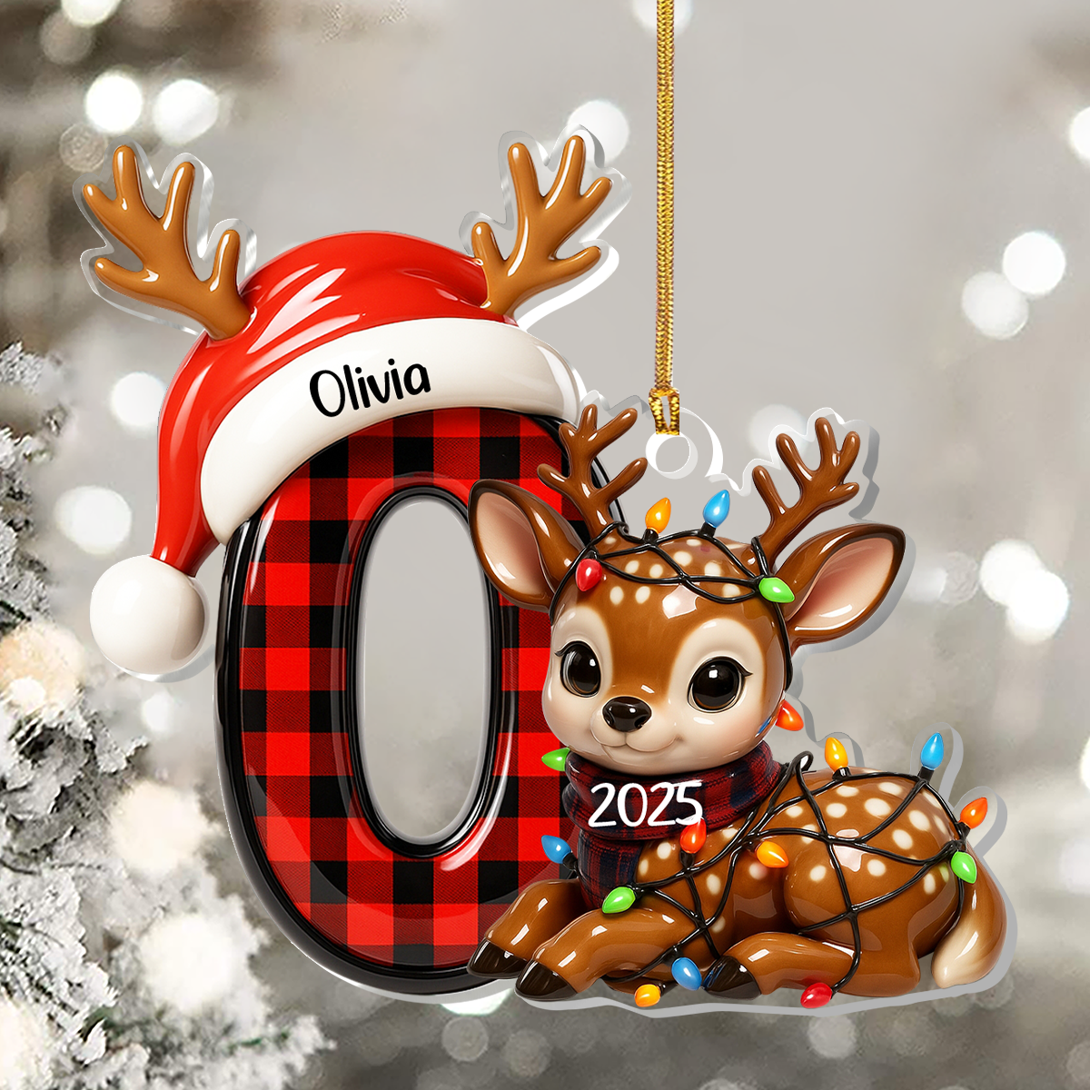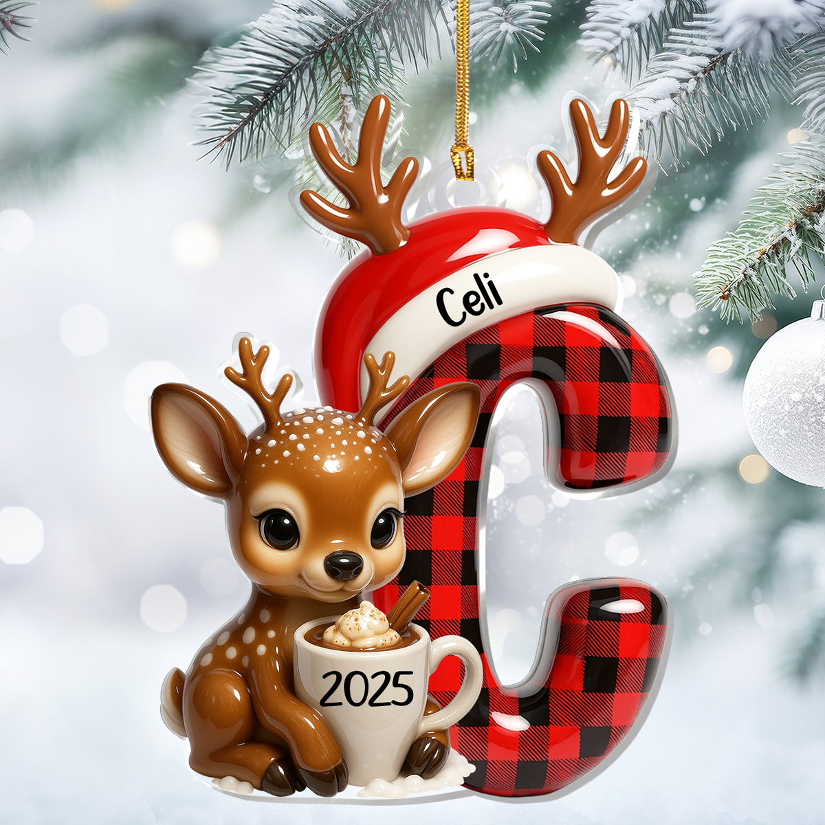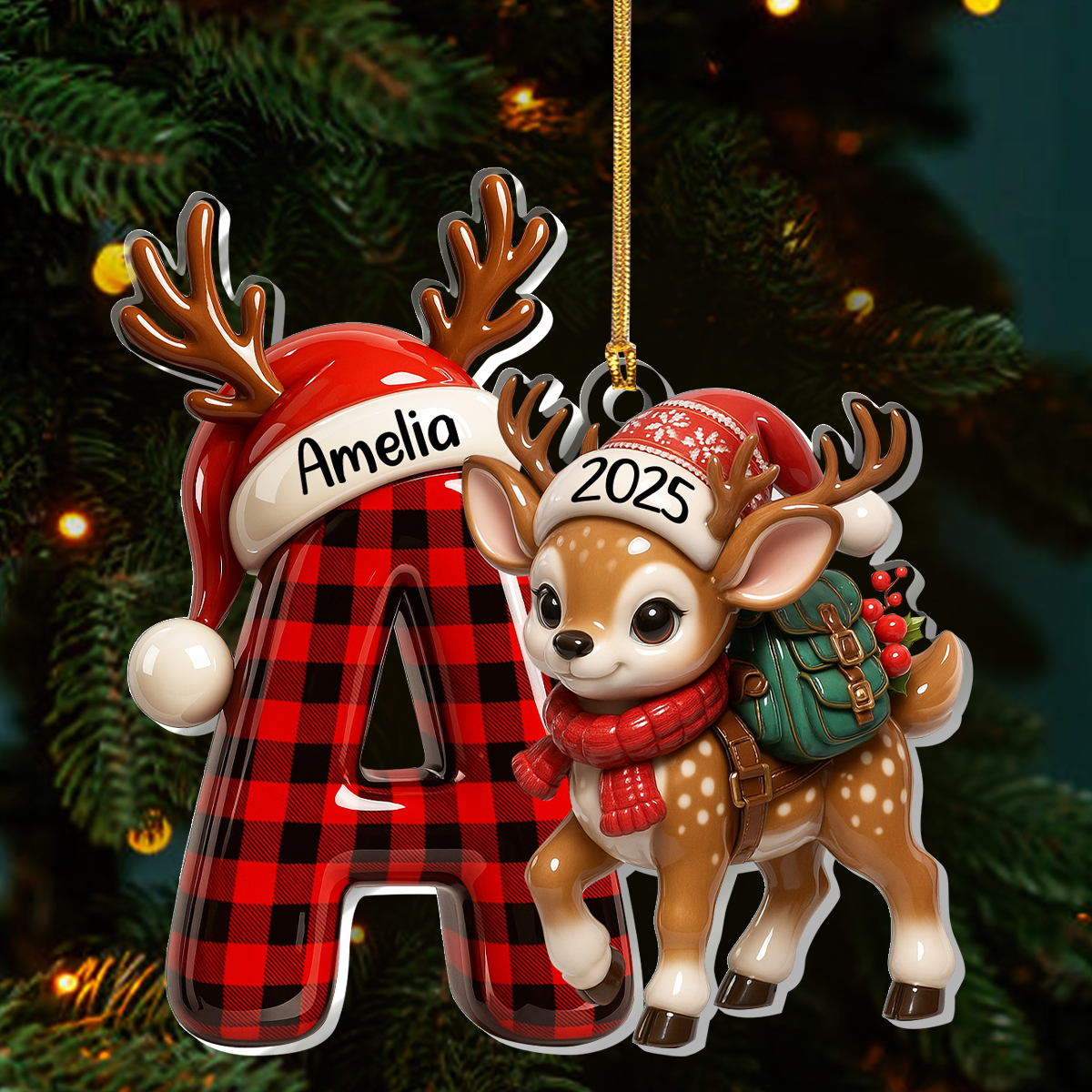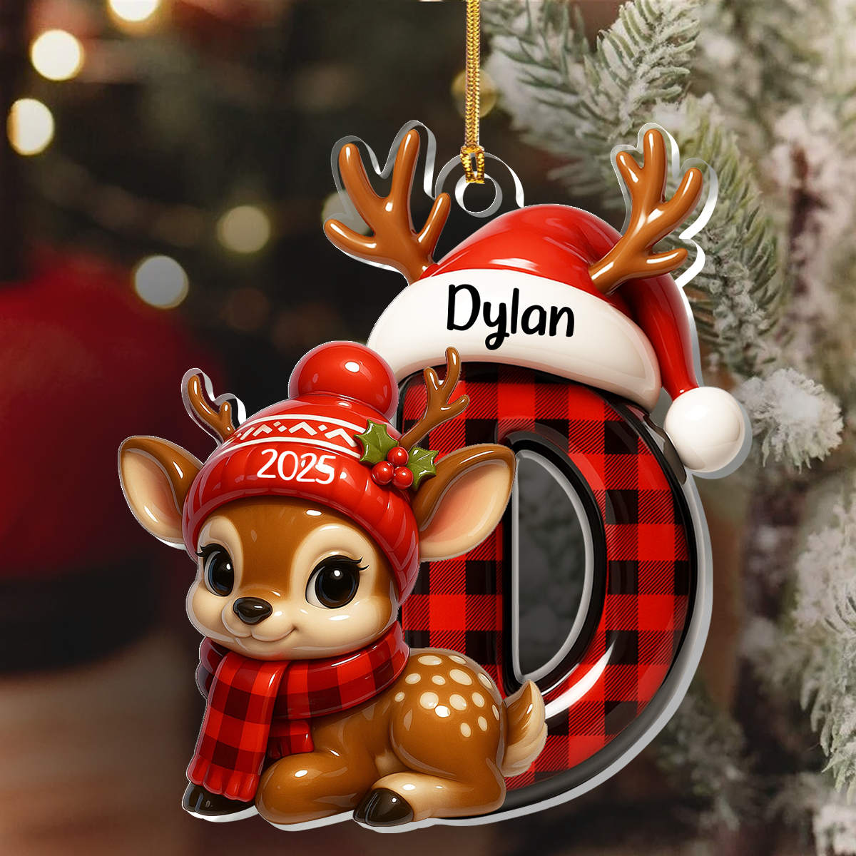 Festive Adorable Reindeer Christmas Alphabet - Personalized 1-Layer Acrylic Ornament