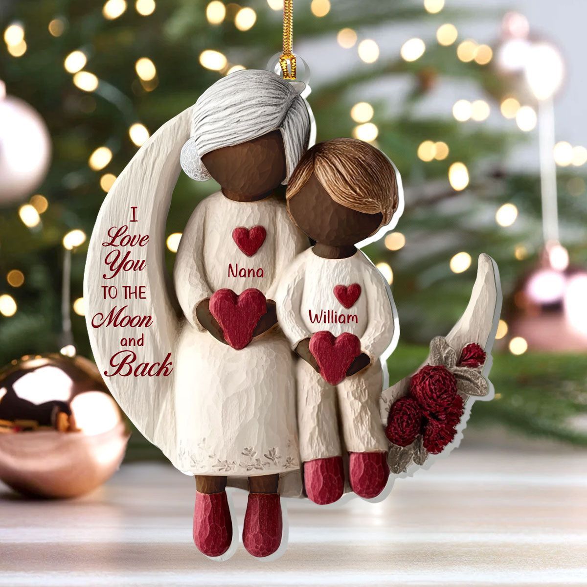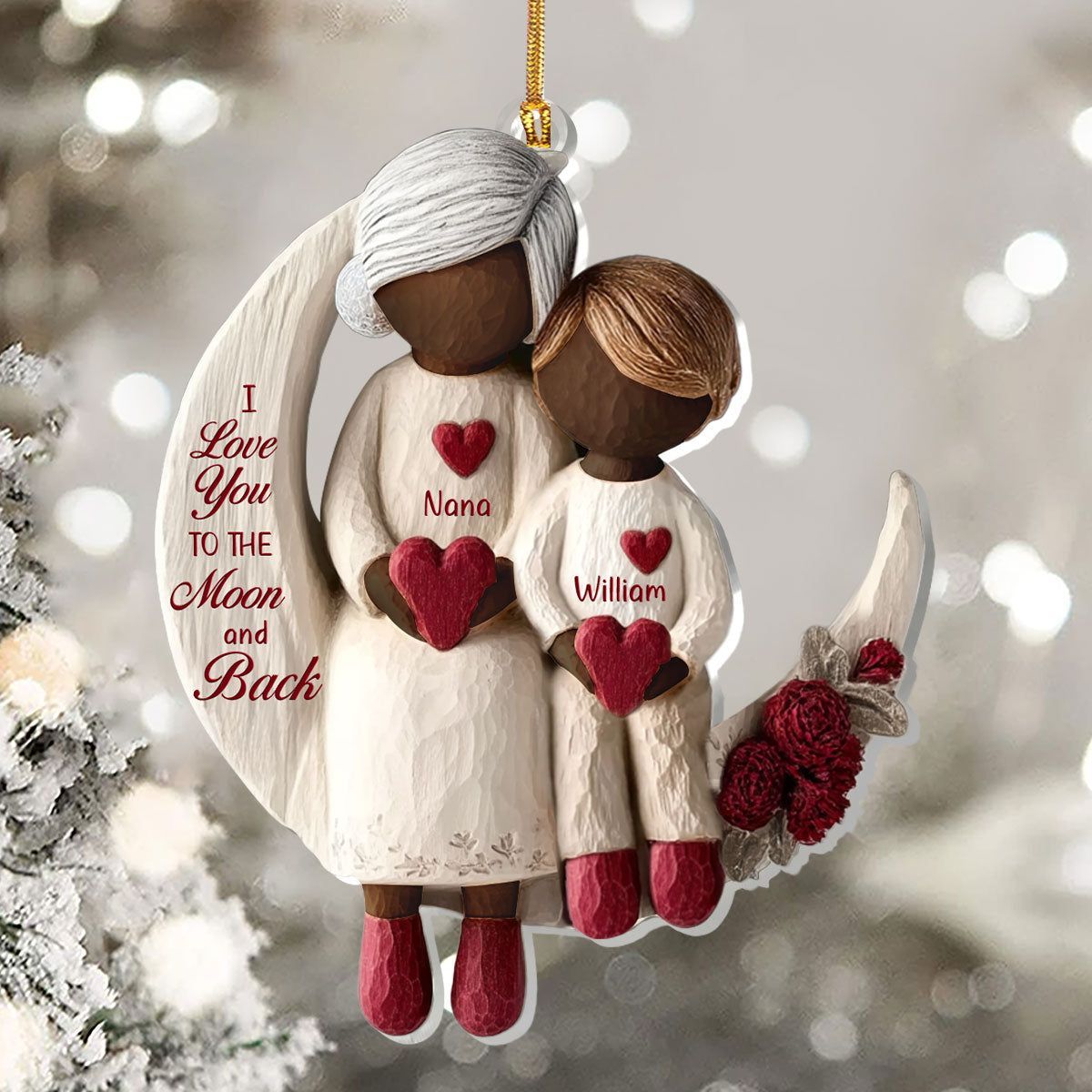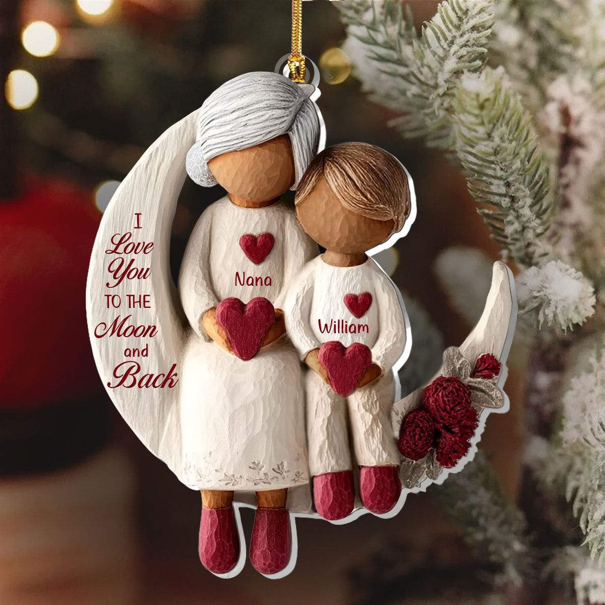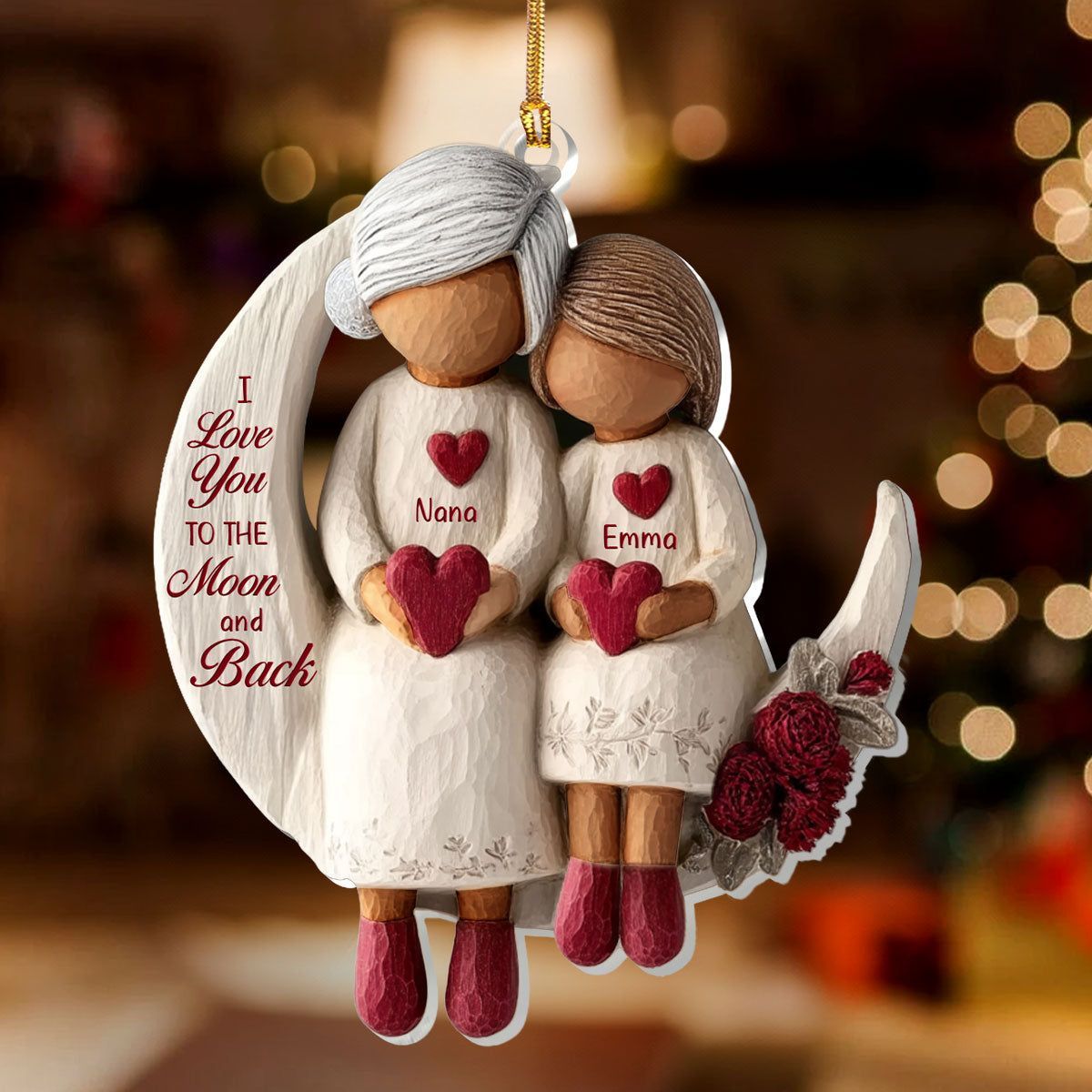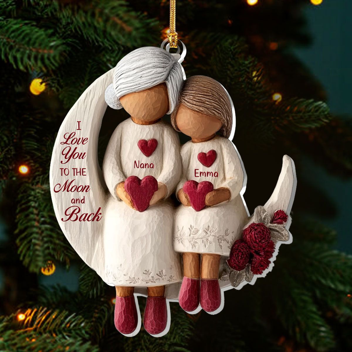 Grandma And Grandchild Moon Love Ver 2 - Personalized 1-Layer Acrylic Ornament