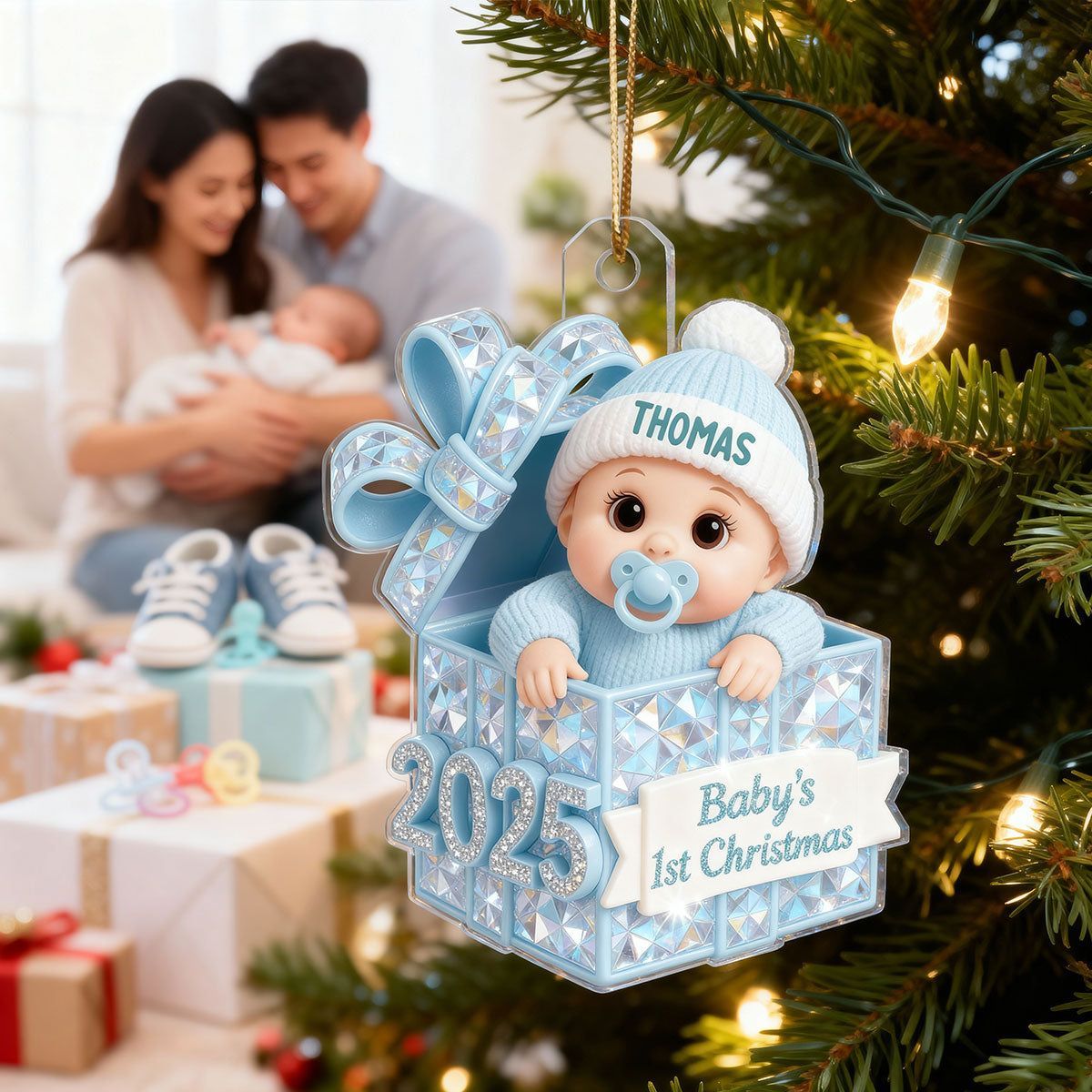 Baby In The Box - Pastel Color Baby's First Christmas - Personalized Acrylic Ornament