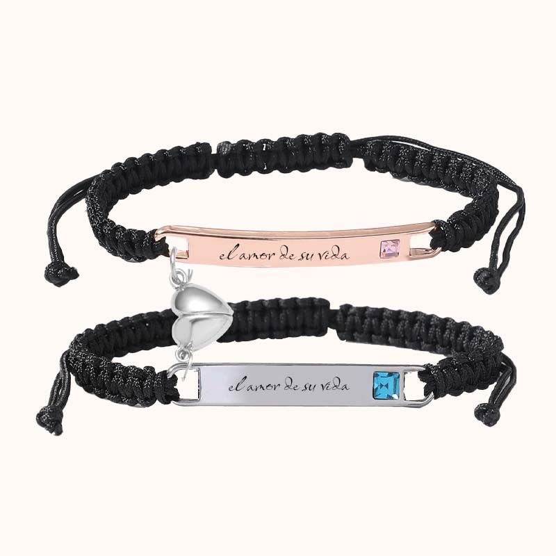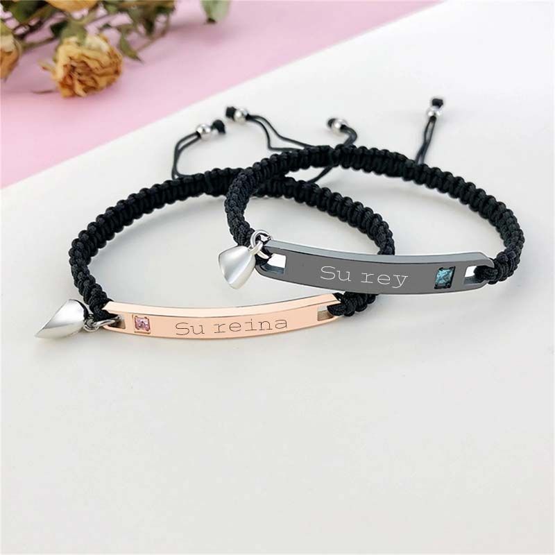 This zinc alloy braided bracelet combines simple design with personalisation, displaying a discreet yet unique charm. Whether engraved with a name or a touching phrase, it can become an exclusive mark between you and the wearer, conveying the most sincere emotions.