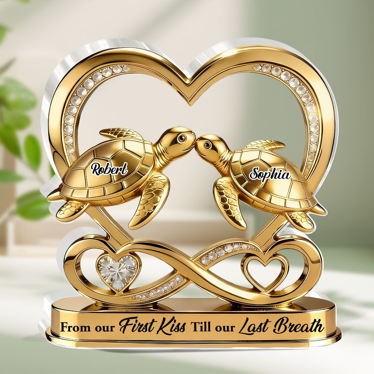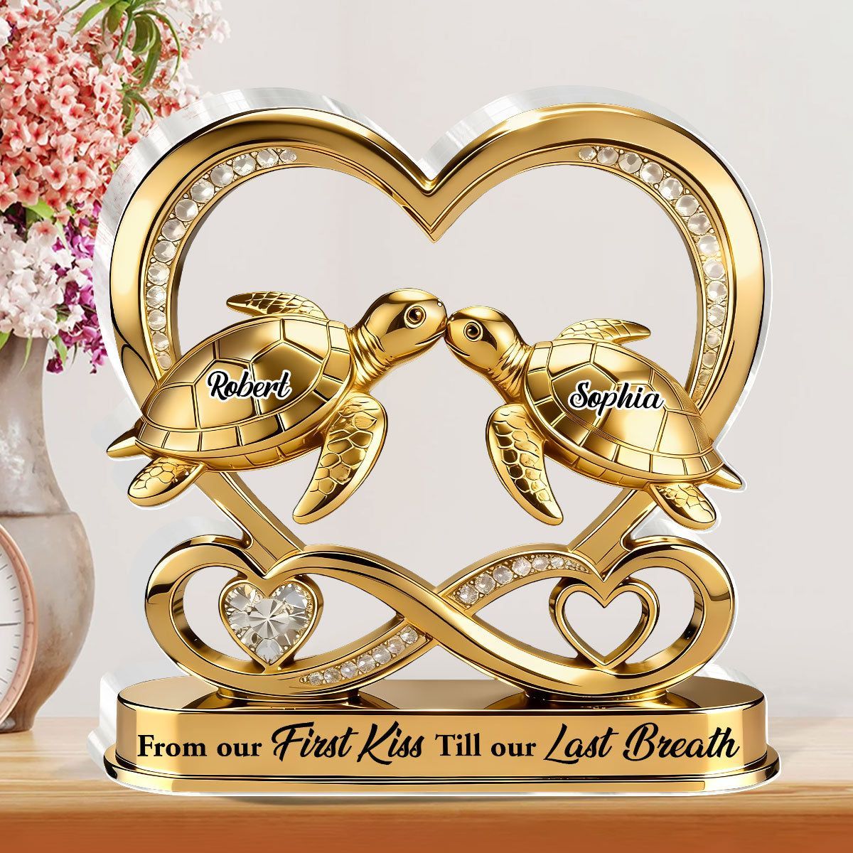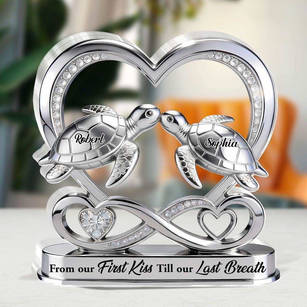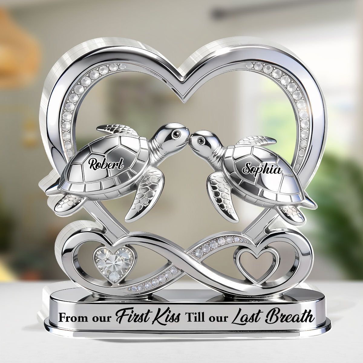 Personalized Sea Turtle Couple Acrylic Plaque | From Our First Kiss Till Our Last Breath Silver Infinity Heart Love Keepsake