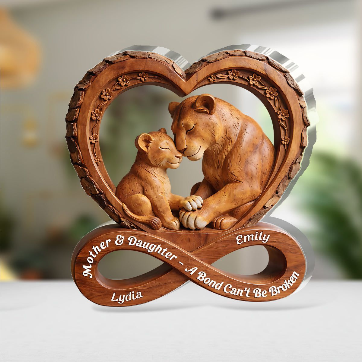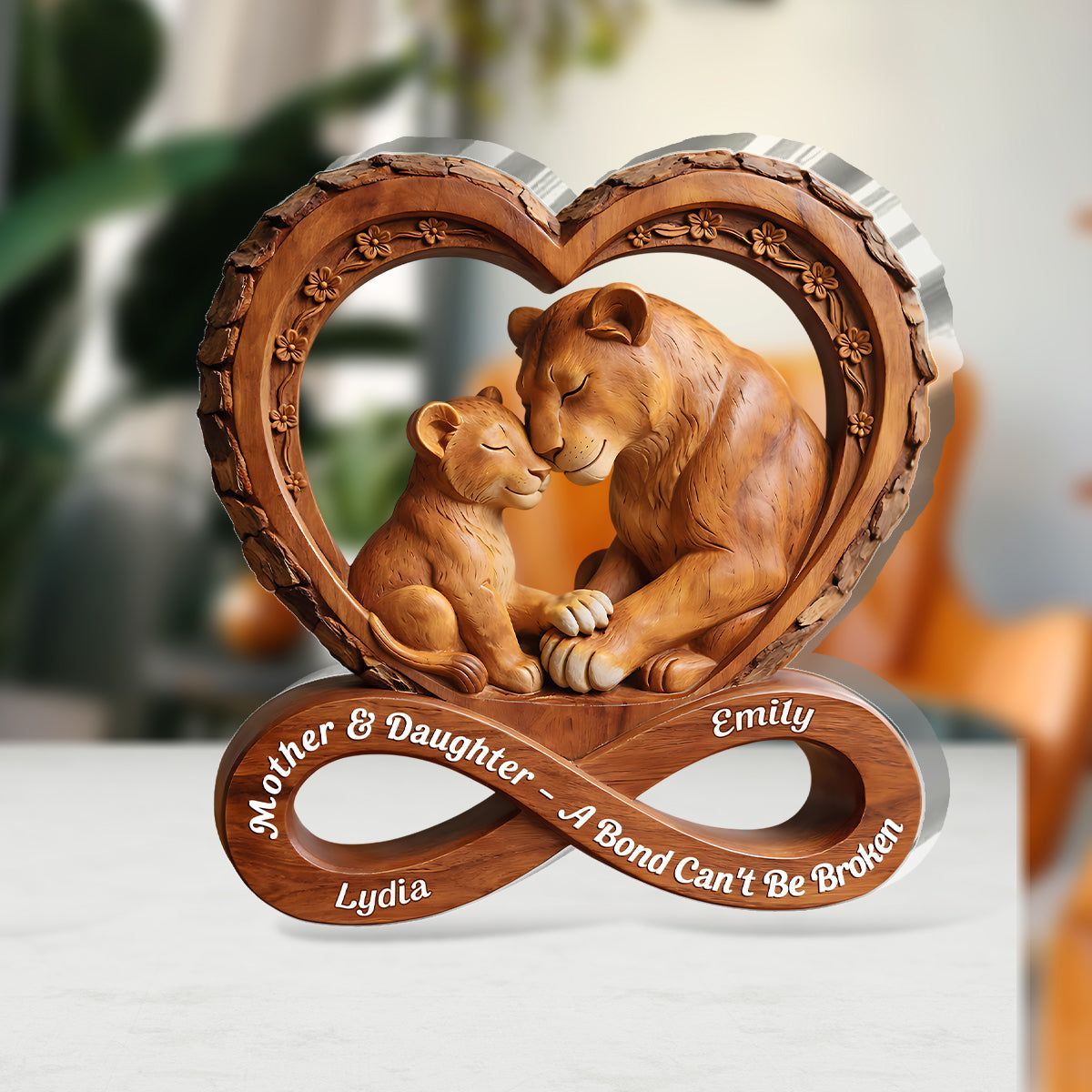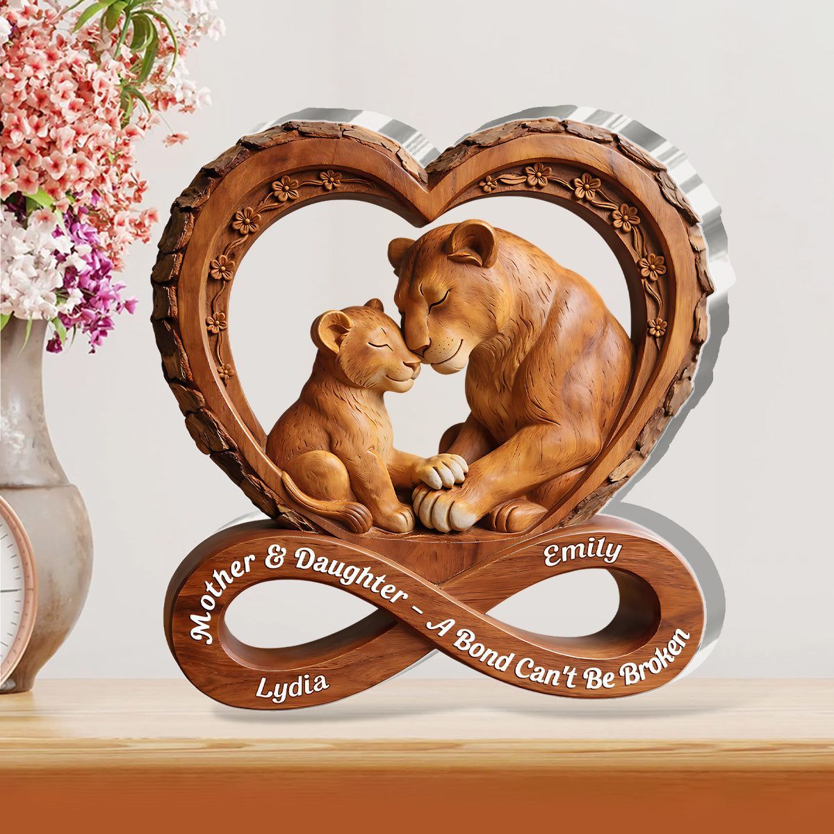 Personalized Mother & Daughter Lion Acrylic Plaque | A Bond Can't Be Broken Infinity Heart Keepsake