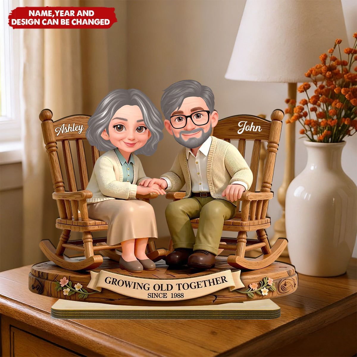 Eternal Love Couple On Rocking Chairs Growing Old Together - Personalized 2-Layered Wooden Plaque