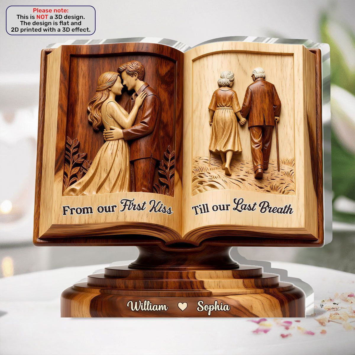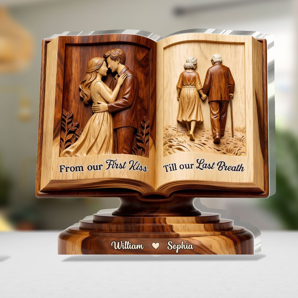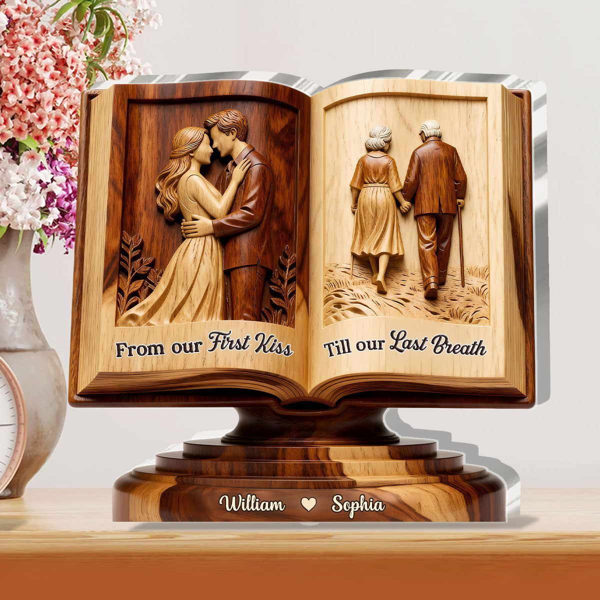 Personalized From Our First Kiss Till Our Last Breath Love Story Book Acrylic Plaque | Custom Name Couple Keepsake