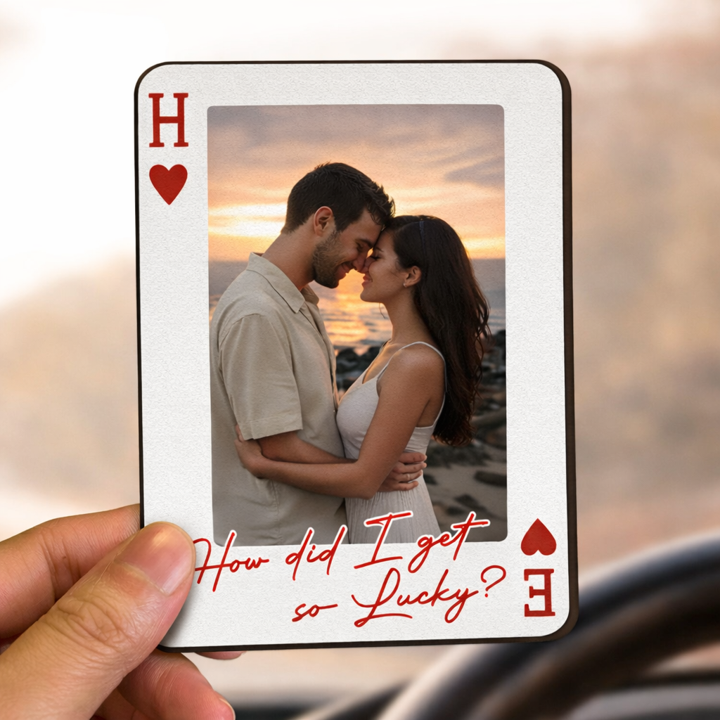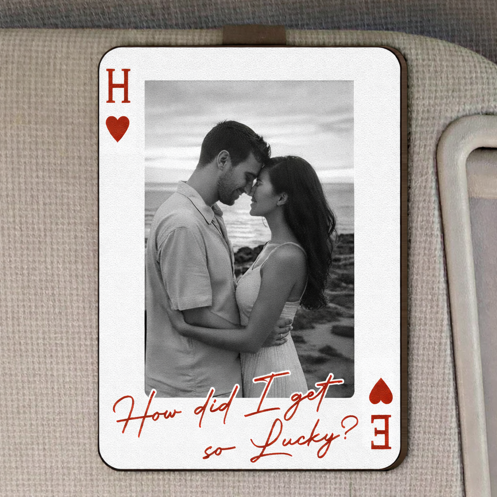 King & Queen Personalized Wooden Photo Visor Clip for Couples - Perfect Pair Custom Car Accessory