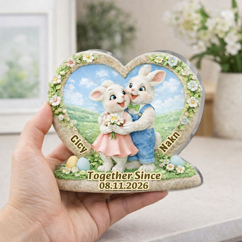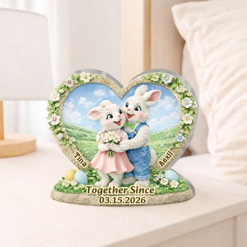 Personalized Bunny Couple Acrylic Plaque | Together Since Date Spring Love Keepsake