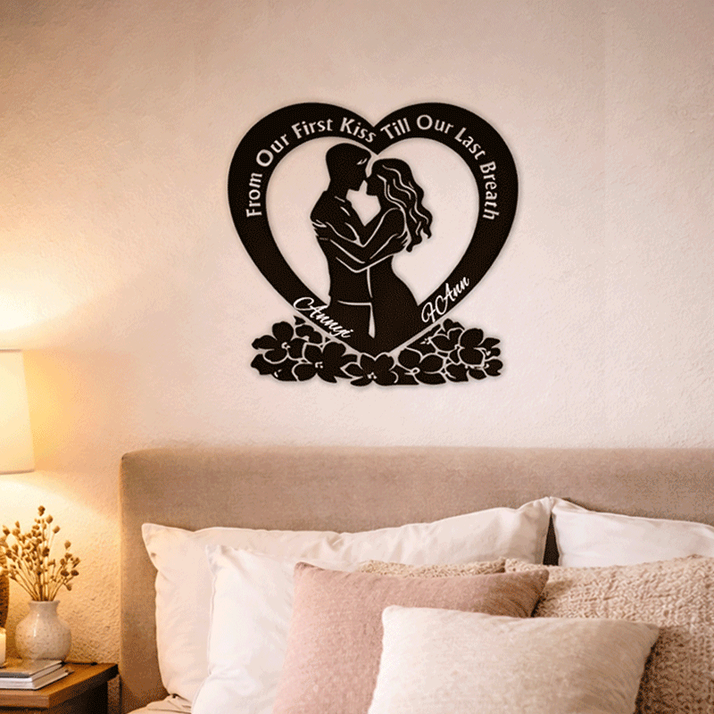 Personalized Heart Couple Metal Wall Art | From Our First Kiss Till Our Last Breath Love Decor