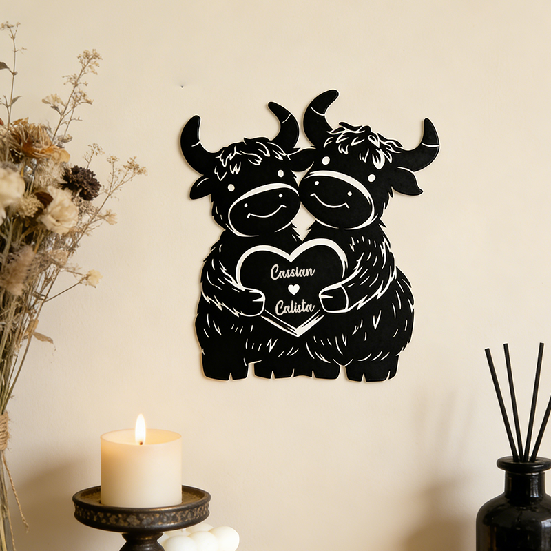 Personalized Highland Cow Couple Metal Wall Art | Custom Name Love Decor 🌟 Core Highlights