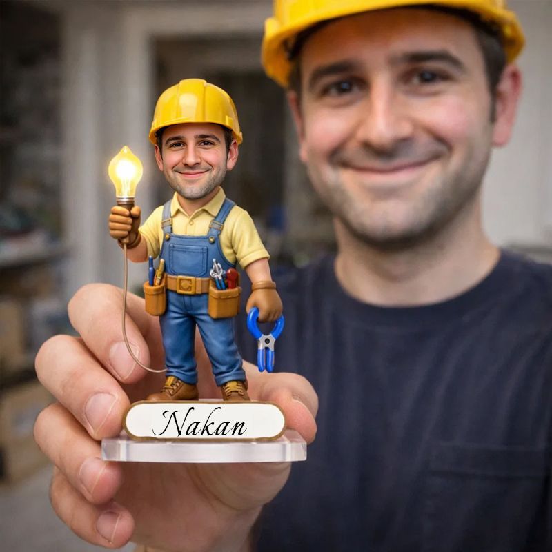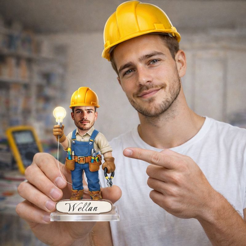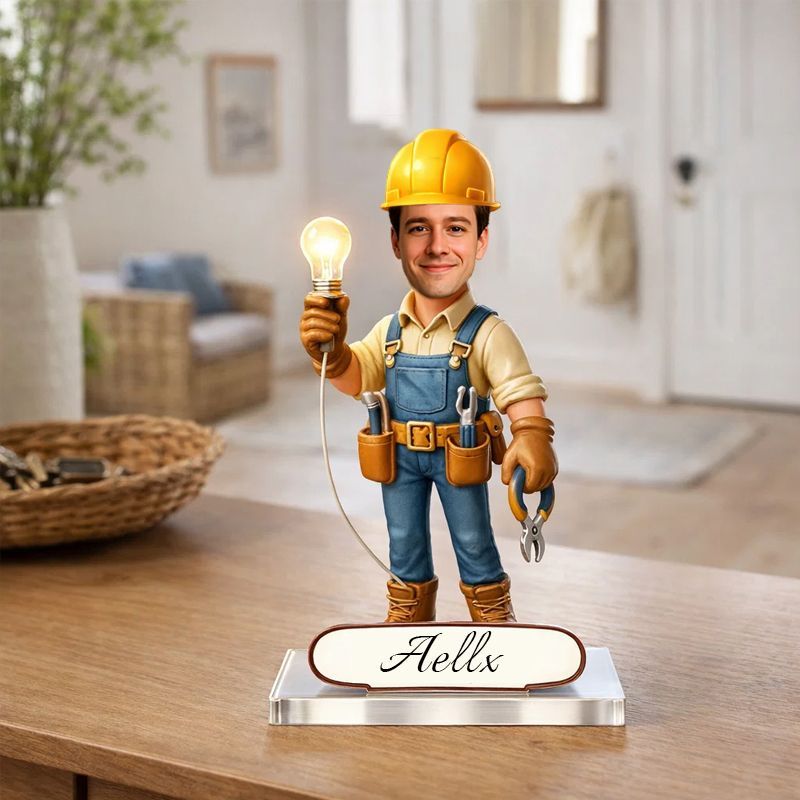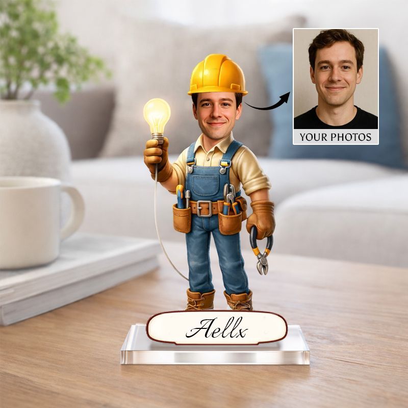Personalized Electrician Caricature Acrylic Plaque | Custom Name Electrician Keepsake