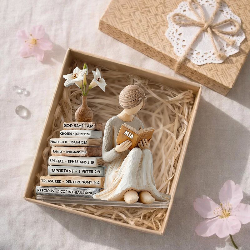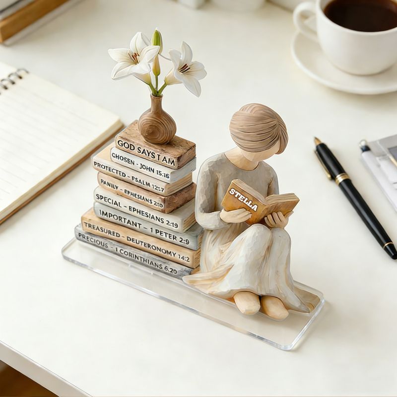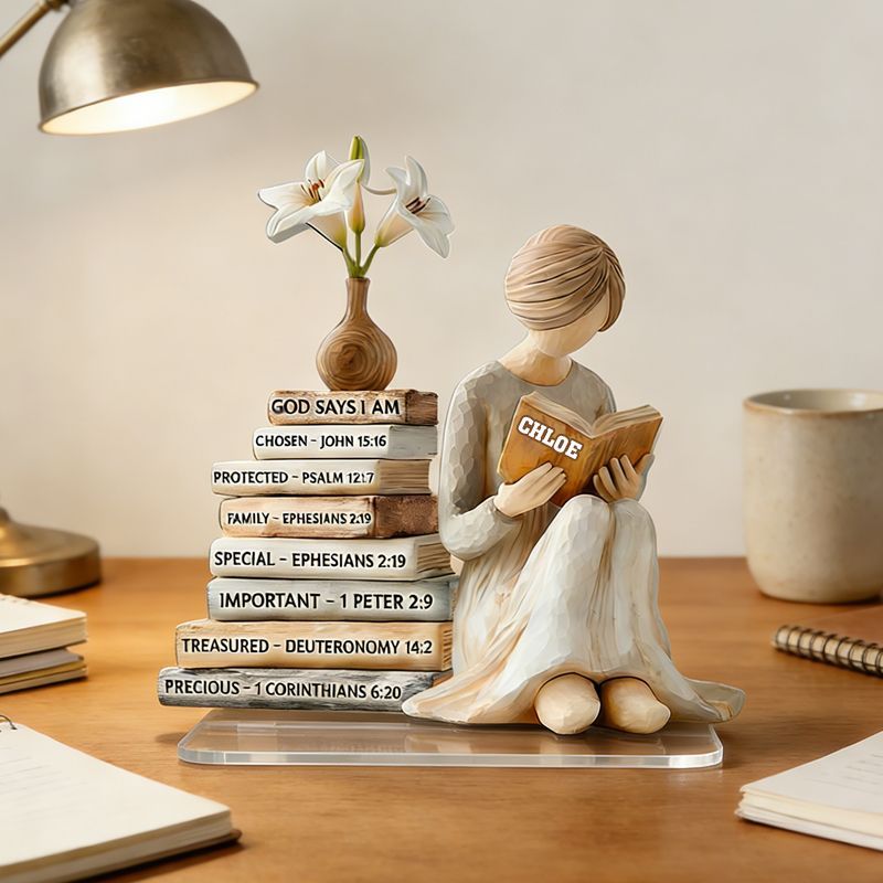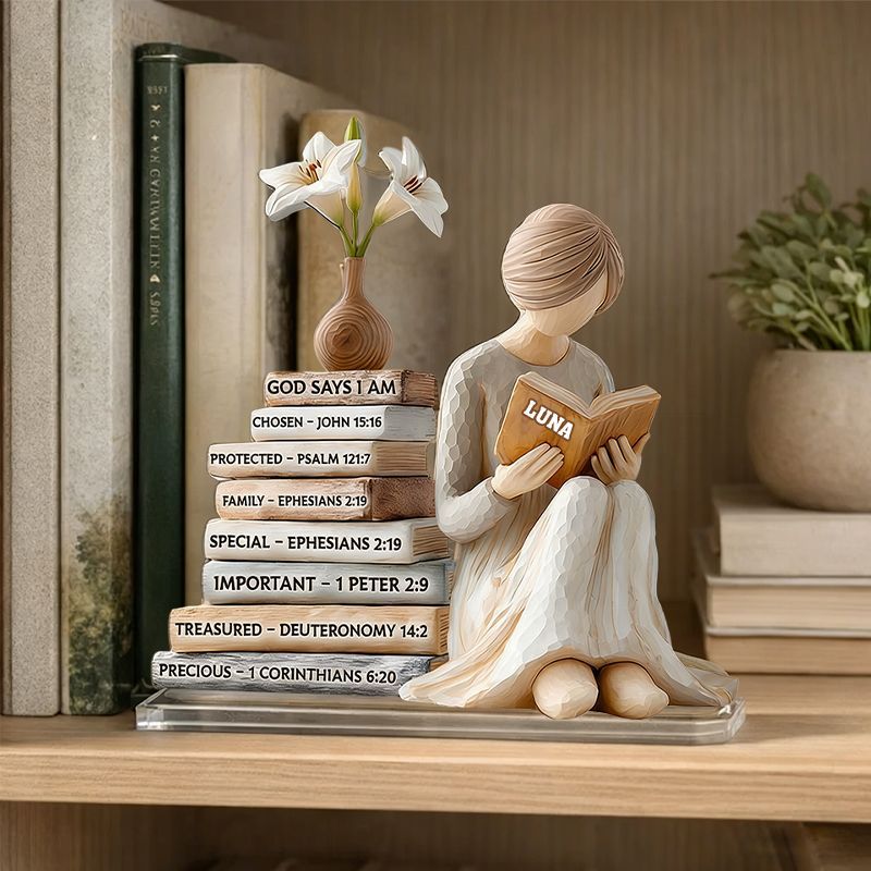 Personalized God Says I Am Reading Woman Acrylic Plaque | Custom Name & Bible Verse Keepsake